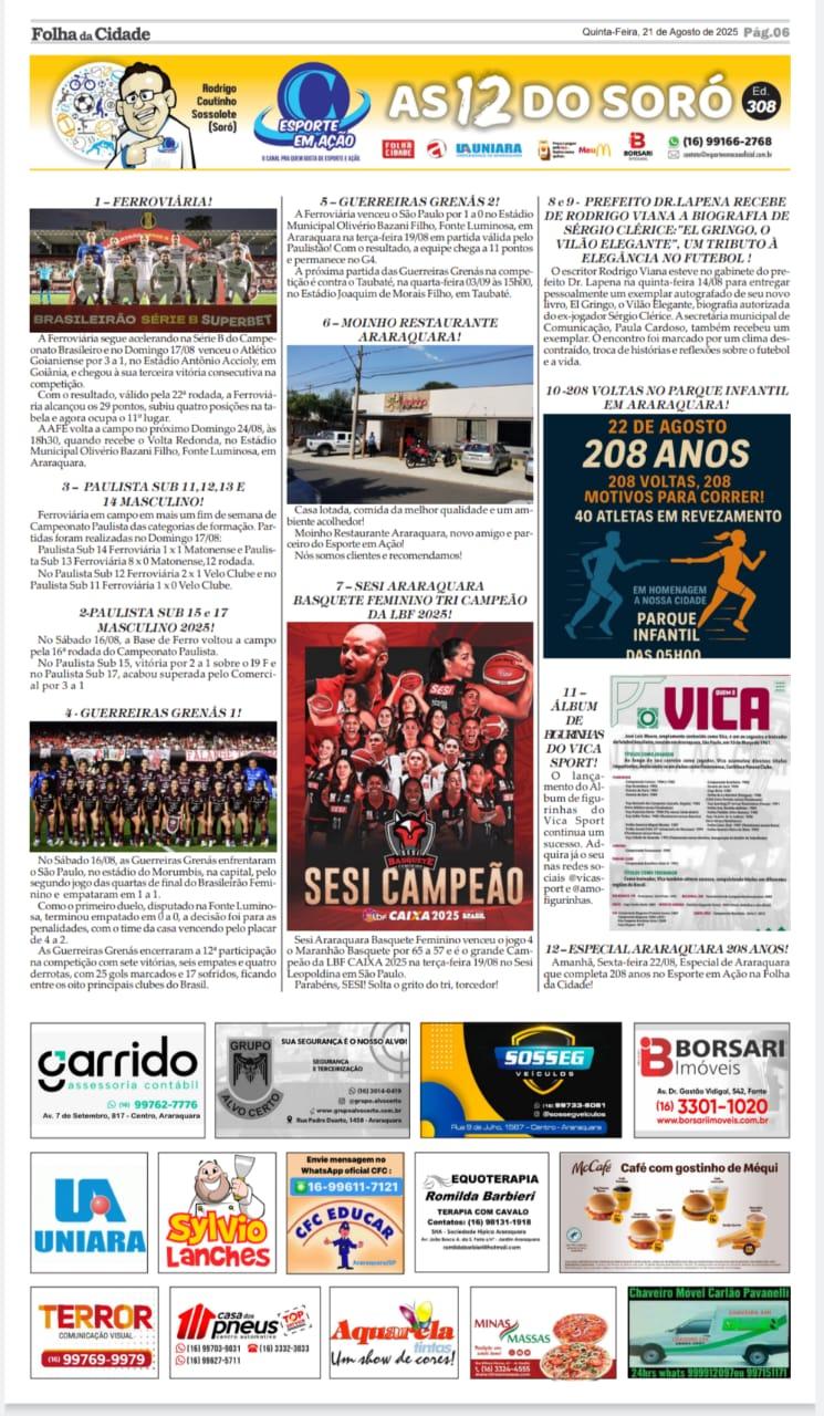 AS 12 DO SORÓ - FOLHA DA CIDADE DE ARARAQUARA - 21/08/2025 - QUINTA-FEIRA!