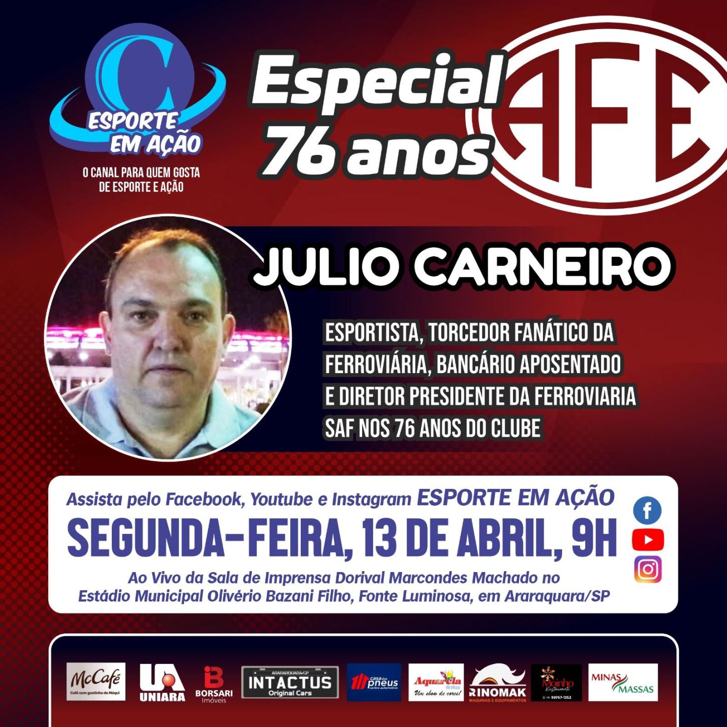 2 – Júlio Carneiro,Diretor Presidente atual da Ferroviária SAF que será entrevistado nesta Segunda-feira 13/04/2026 às 09h00.