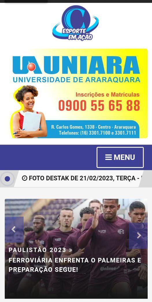O seu Portal de Esportes para Araraquara e Região foi lançado oficialmente na sexta-feira 24/02 no Grande Jornal da Manhã,da Rádio Morada do Sol de Araraquara e tem a intenção de sempre deixar quem gosta do esporte informado na hora e 24 horas por dia com informações em tempo real de todos os esportes em especial o Amador de Araraquara e a Fezrroviária,algo inédito na cidade..Foto 1 - O seu Portal de Esportes para Araraquara e Região .www.esporteemacaooficial.com.br.
