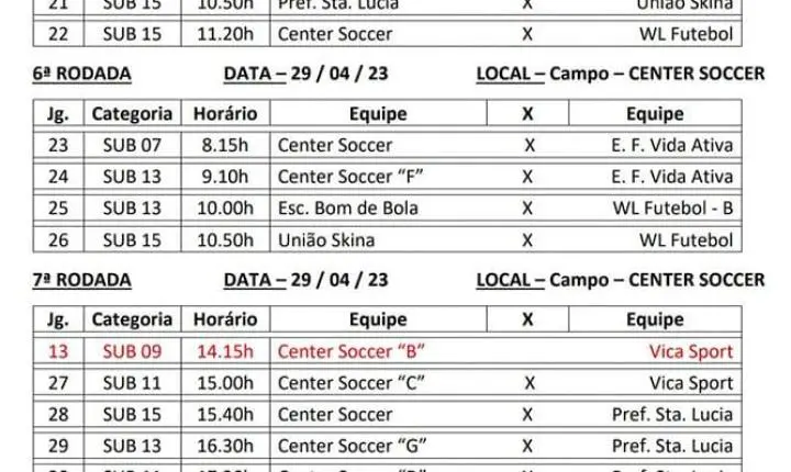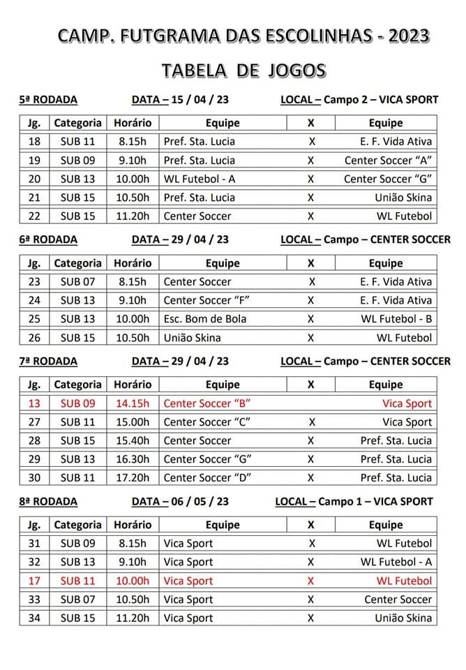 Neste Sábado 29/04 tem rodada do Futgrama das Escolinhas de Araraquara 2023!Competição reúne as escolinhas Center Soccer , Vida Ativa e Vica Sport.
