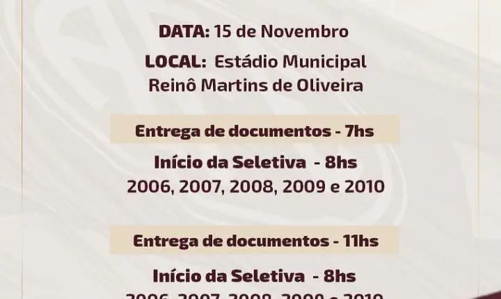É hora de mostrar o seu talento dentro de campo!Categorias:conforme o edital de cada seletiva. As inscrições já estão abertas – link nos stories!